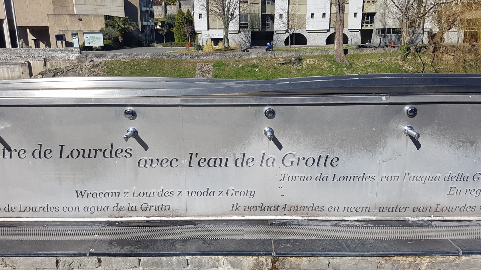 18 nouvelles fontaines d'eau de Lourdes s'offrent aux visiteurs depuis le 08/04/2017. Inscrit dans le projet Grotte Coeur de Lourdes, ce nouvel espace se situe en aval de la grotte de Massabielle en l'emplacement de l'ancien local des feutiers.